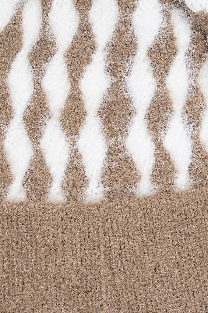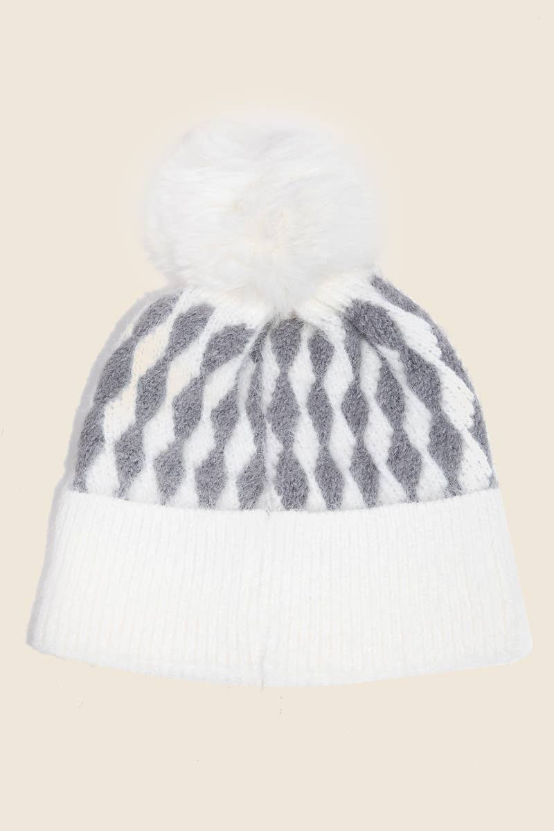 Abstract Diamond Knit Pom Pom Beanie : Khaki