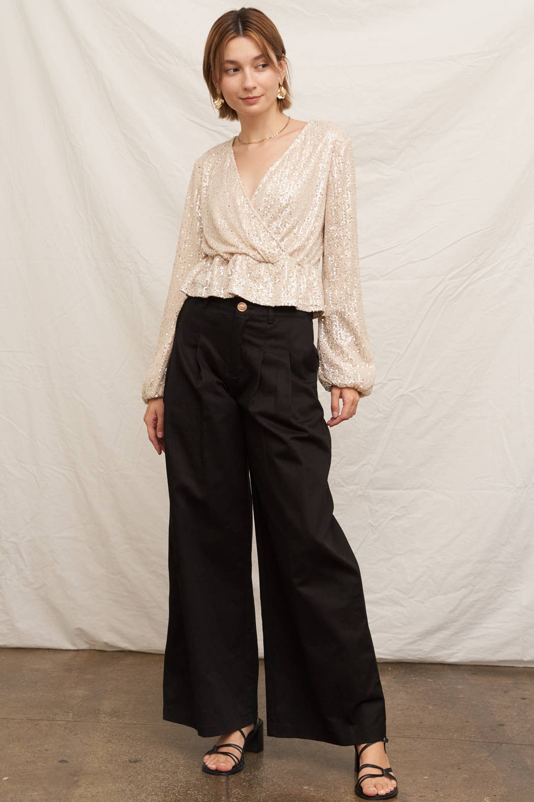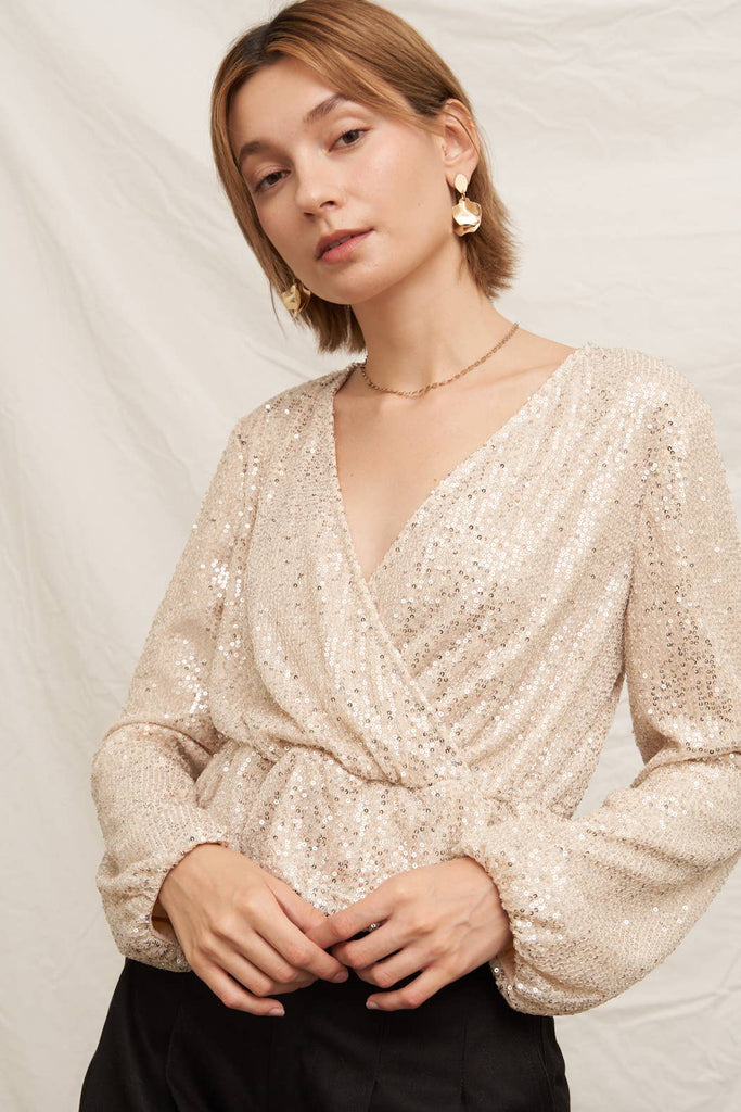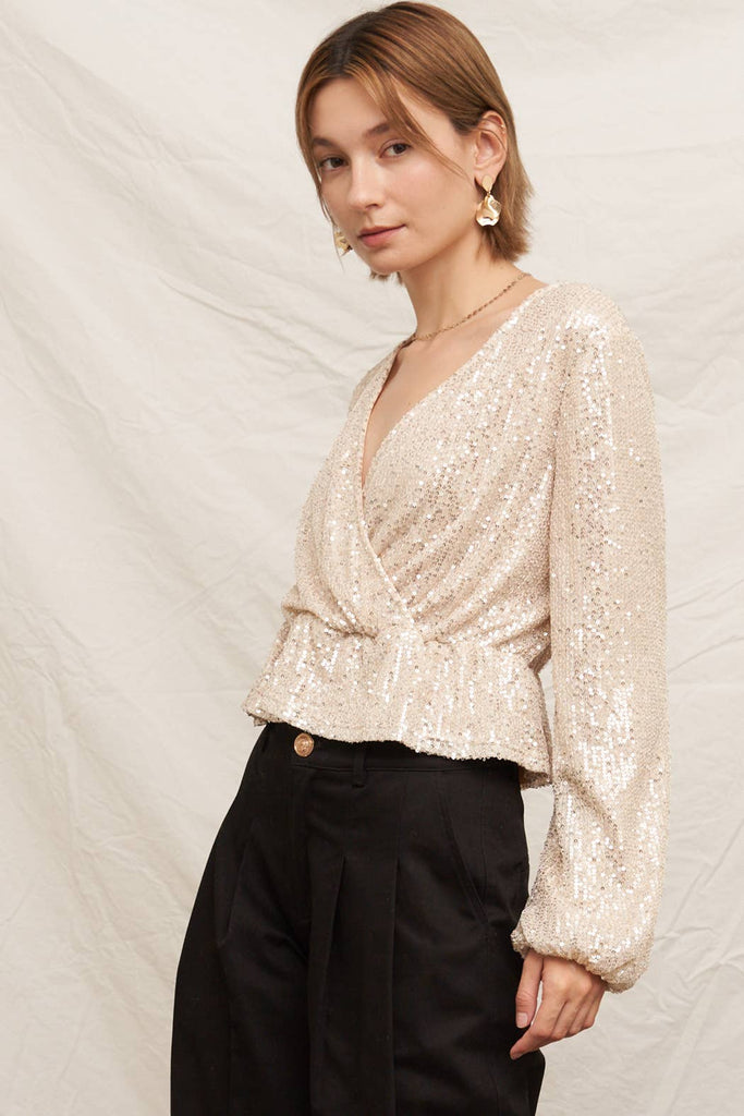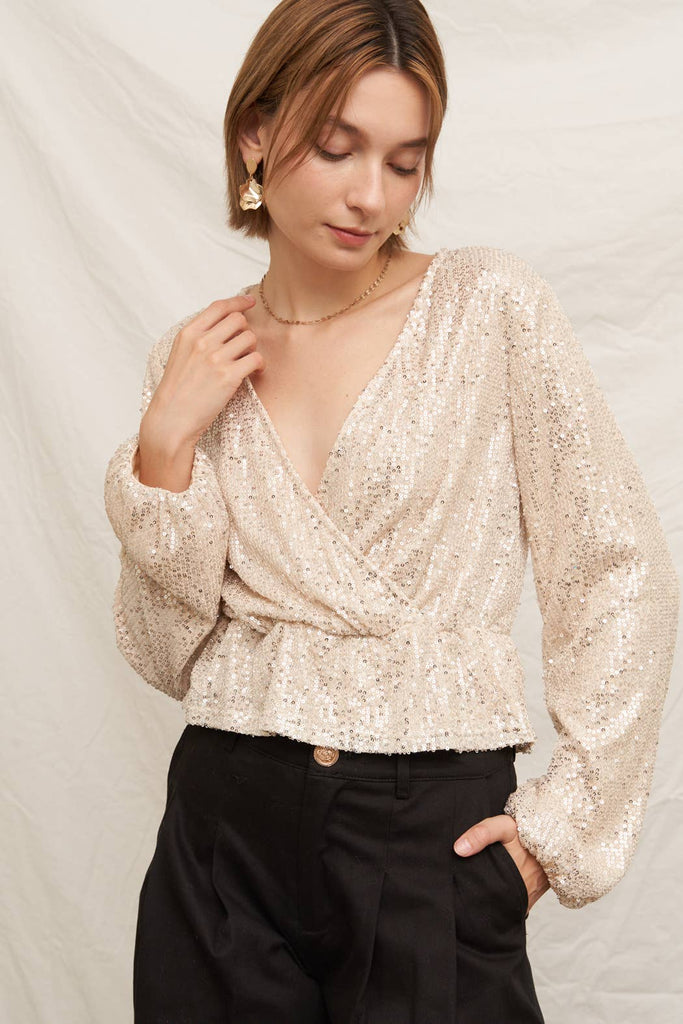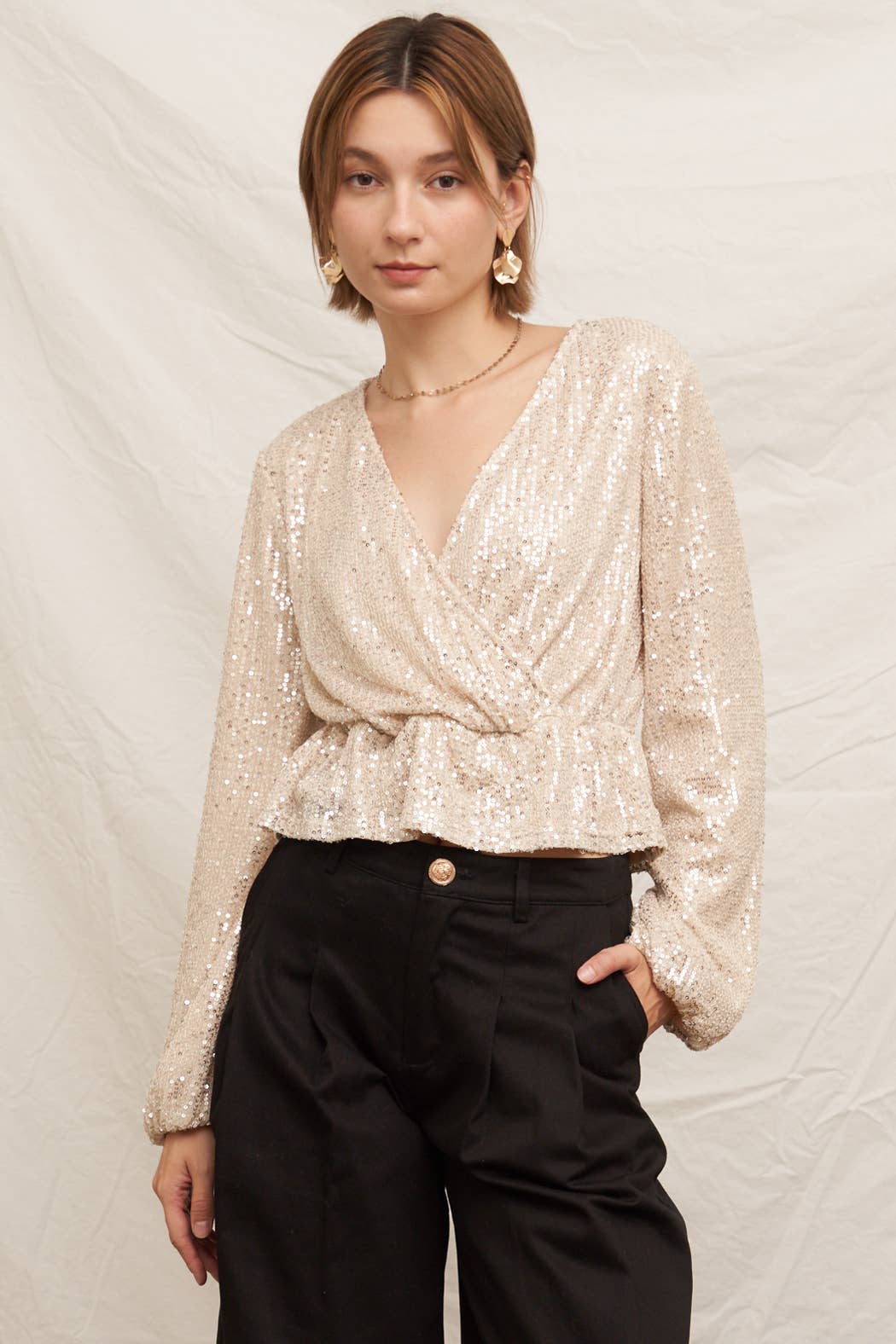 Elevate your evening look with this show-stopping long sleeve peplum sequin top! Crafted from 100% polyester, this piece features shimmering sequins that catch the light beautifully, paired with a flattering peplum silhouette that adds dimension and movement. The long sleeves offer coverage while maintaining that glamorous vibe perfect for nights out or special occasions.
