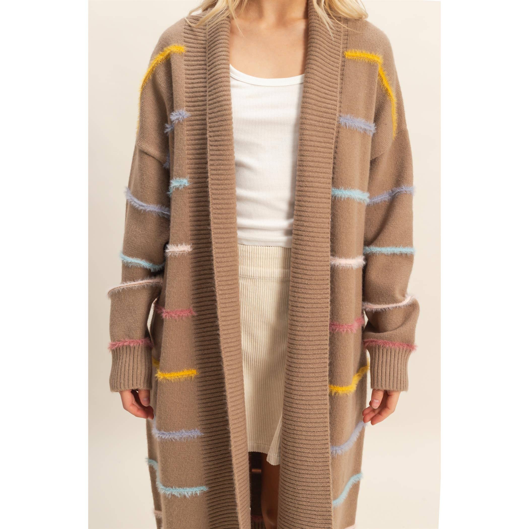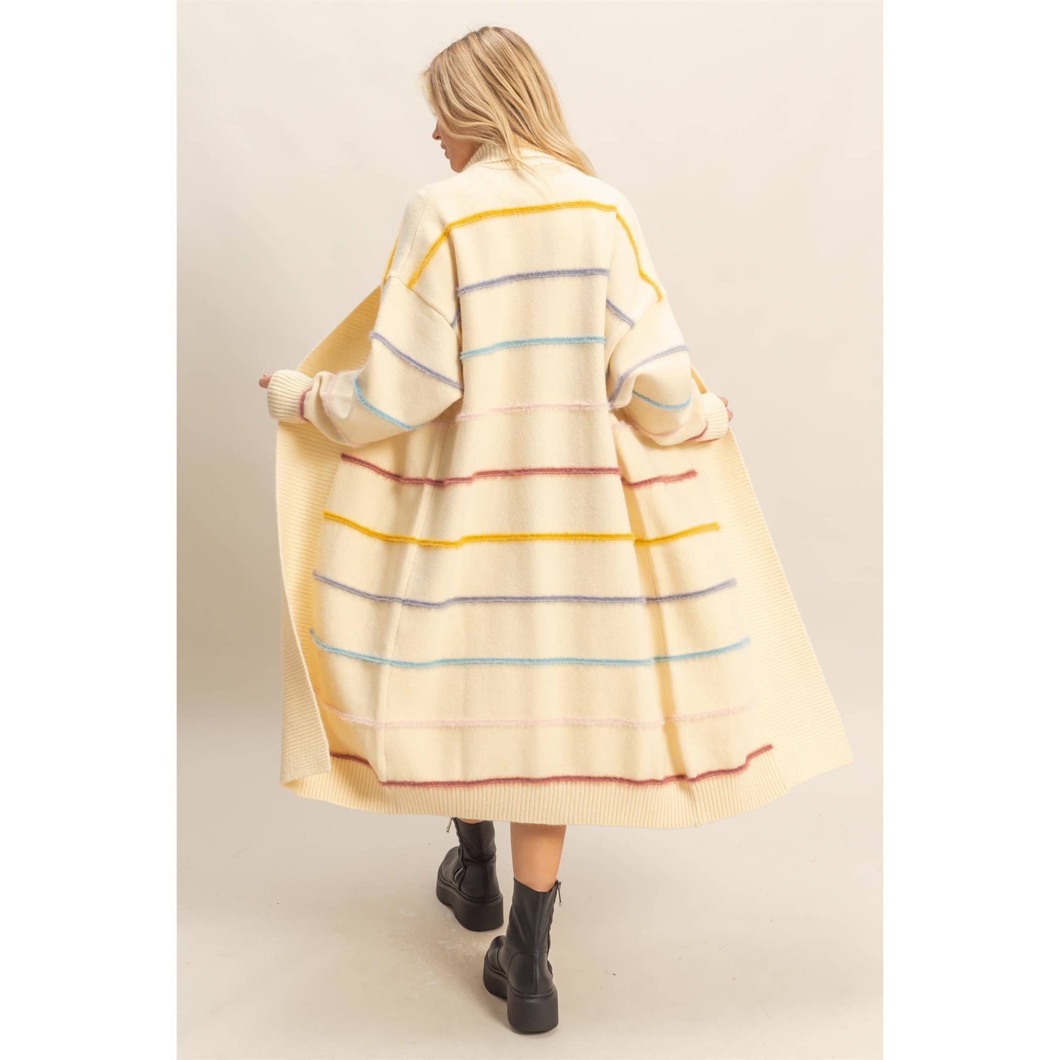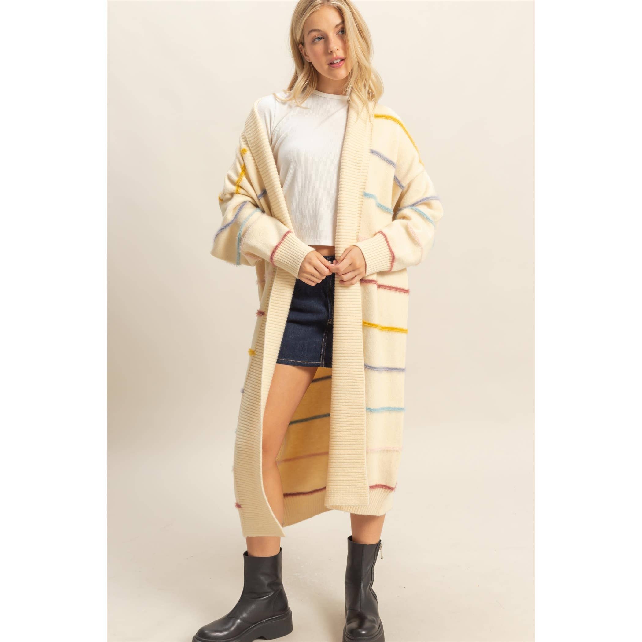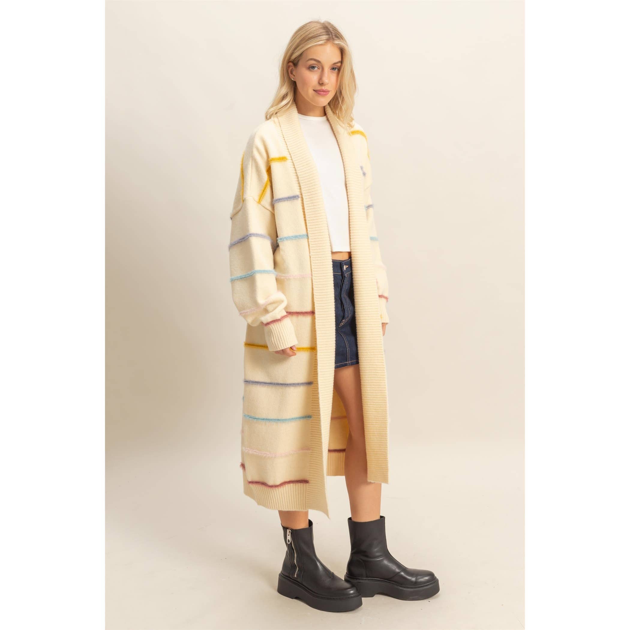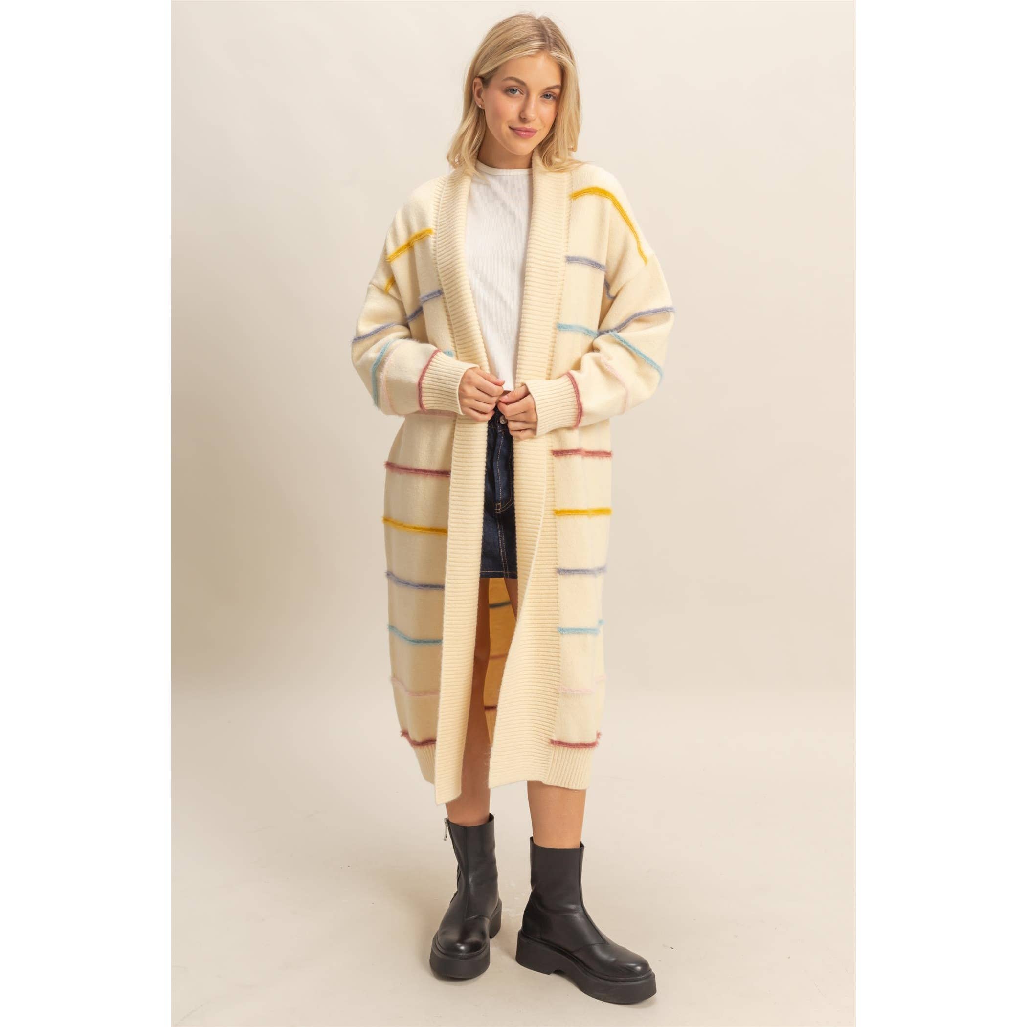 Margo Striped Long Cardigan- Cream
