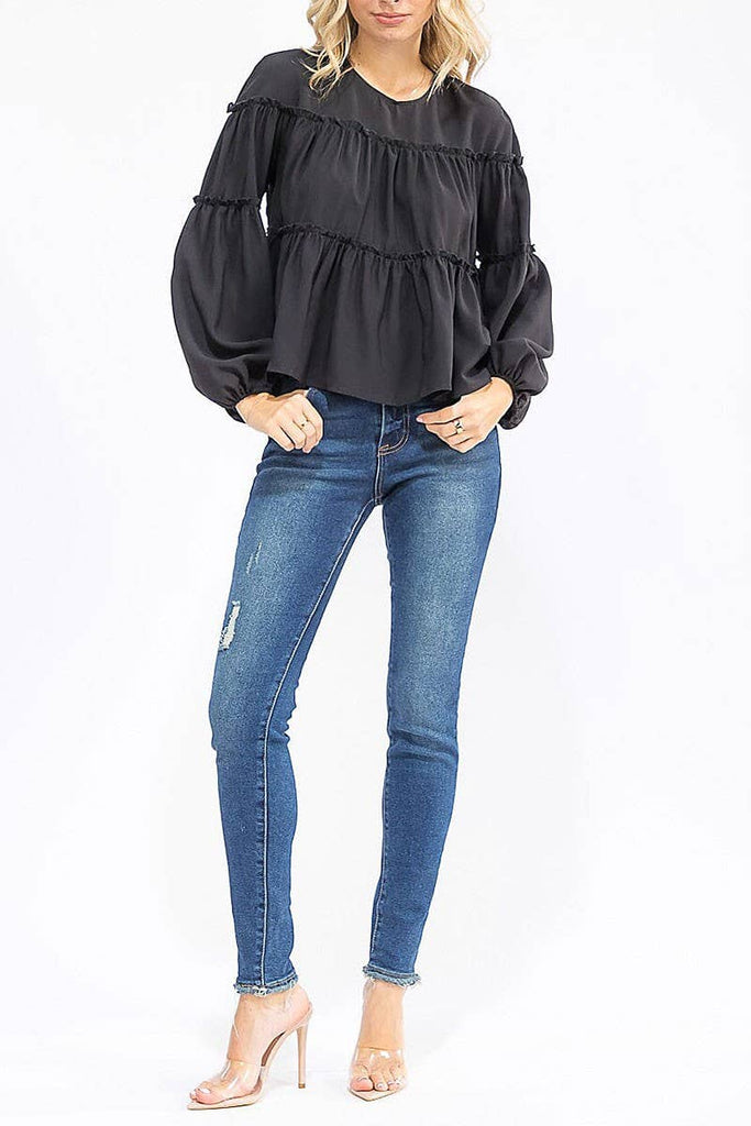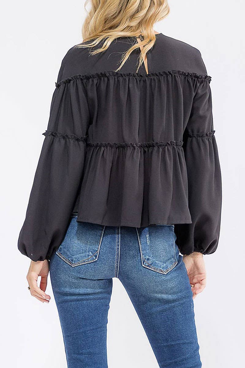 LONG SLEEVE TIERED TUNIC BLOUSE