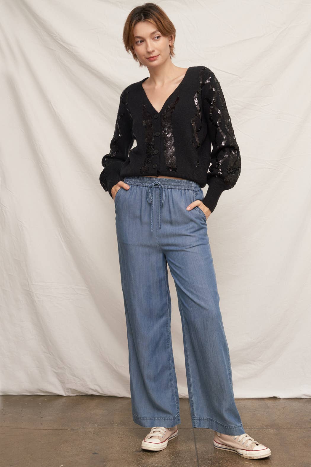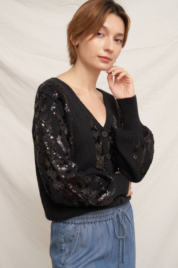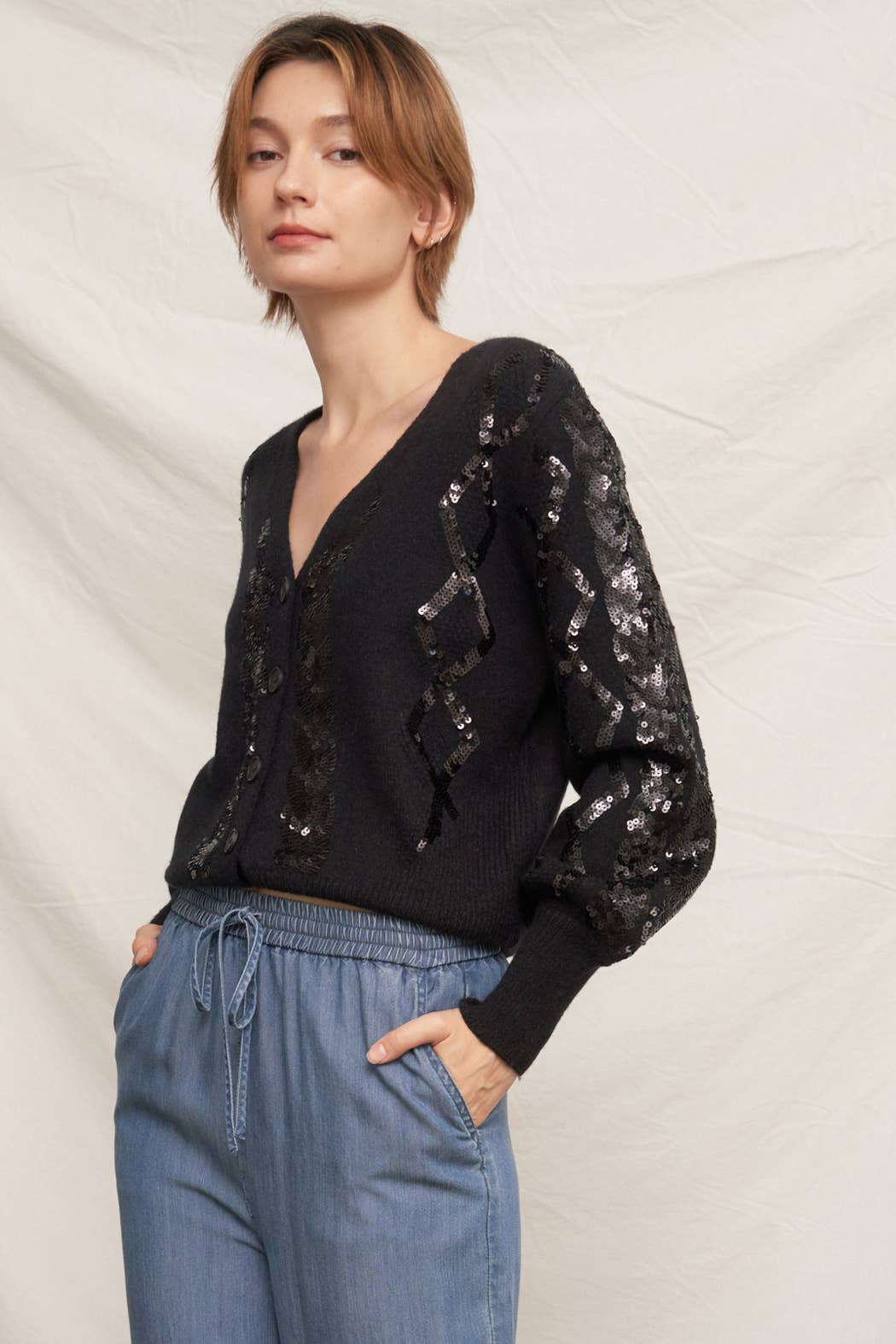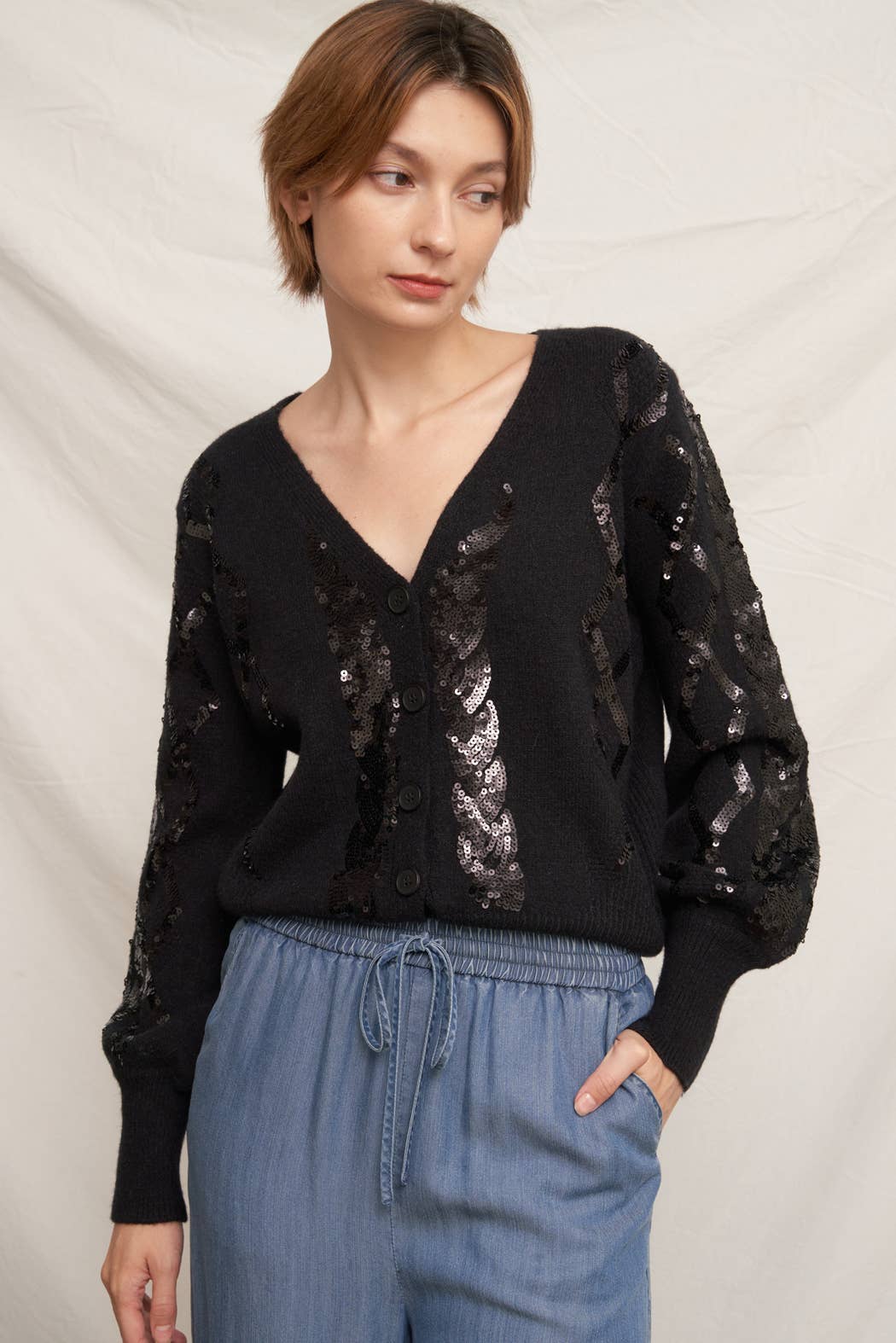 Sparkle through your day in this show-stopping sequin striped cardigan! Featuring eye-catching sequin details woven throughout classic stripes, this cozy layer brings instant glamour to any outfit. Perfect for elevating casual looks or adding shimmer to your evening plans. The comfortable fit makes it ideal for everything from brunch with friends to nights out on the town. Slip it on and let your style shine. *MODEL IS 5'8" AND IS WEARING A SMALL