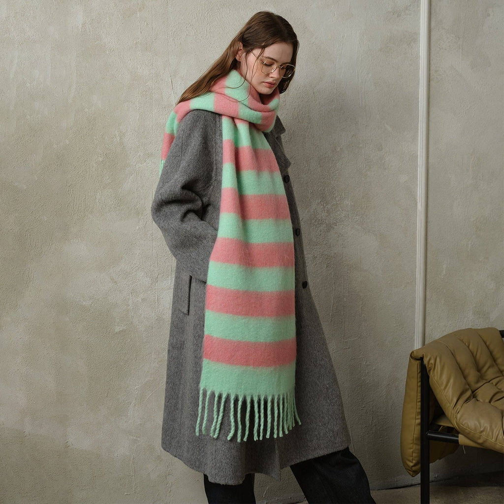 Striped Color Block Thicken Tassel Warm Scarve: Cream and Pink