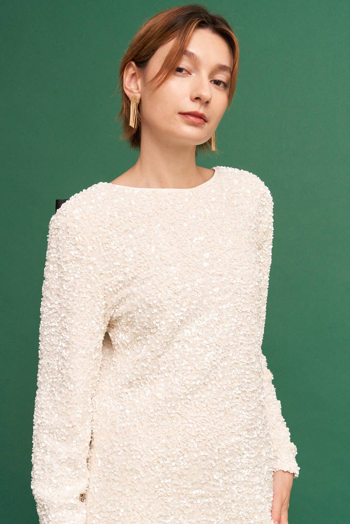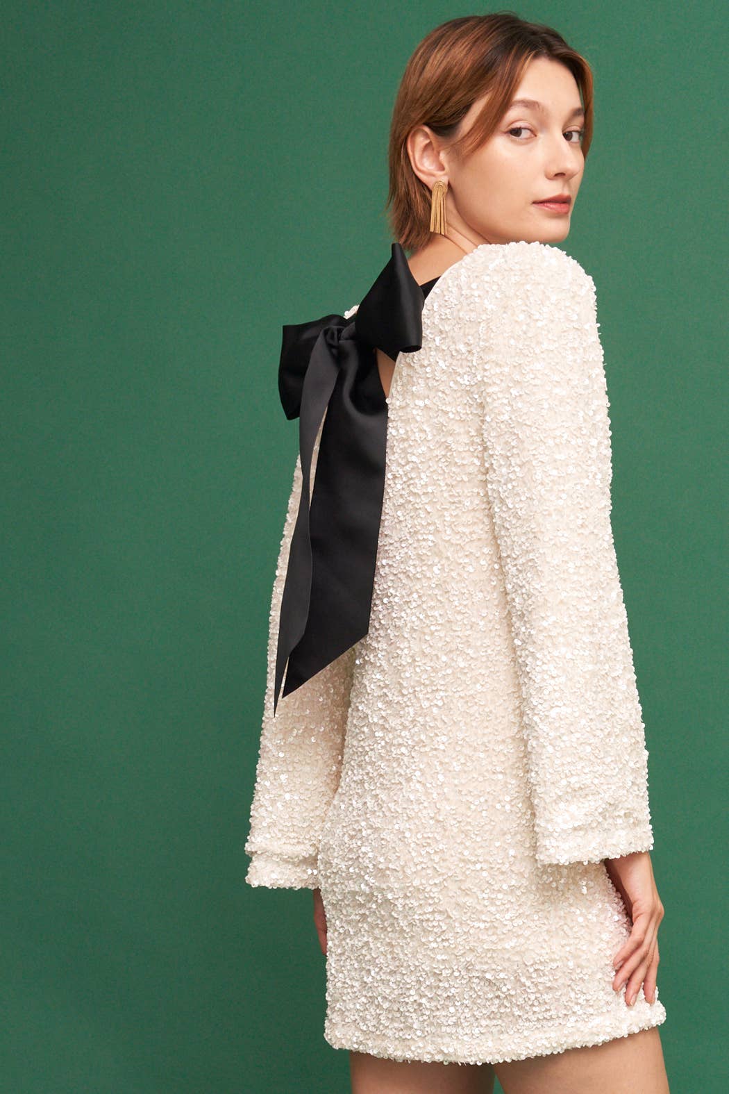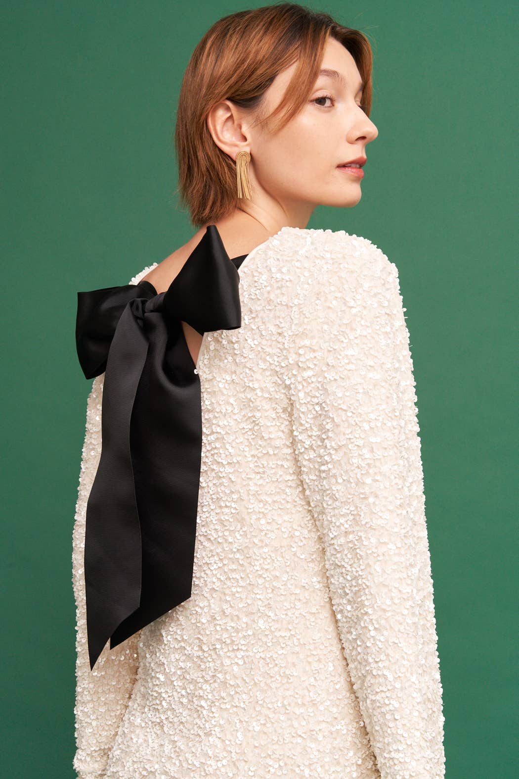 Shimmer and shine in this show-stopping sequin mini dress! Crafted from a luxe polyester-spandex blend, this long-sleeve stunner features an eye-catching back tie bow that adds instant elegance and movement. The all-over sequin detailing catches the light beautifully, making you the center of attention at any event. Perfect for parties, nights out, or whenever you want to feel fabulous.