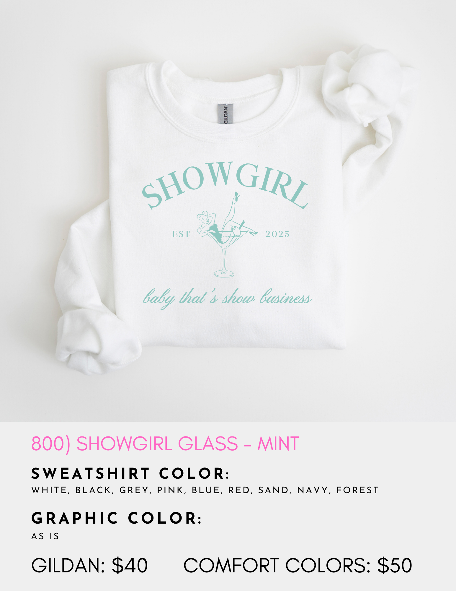 800) Showgirl Glass Sweatshirt - Mint