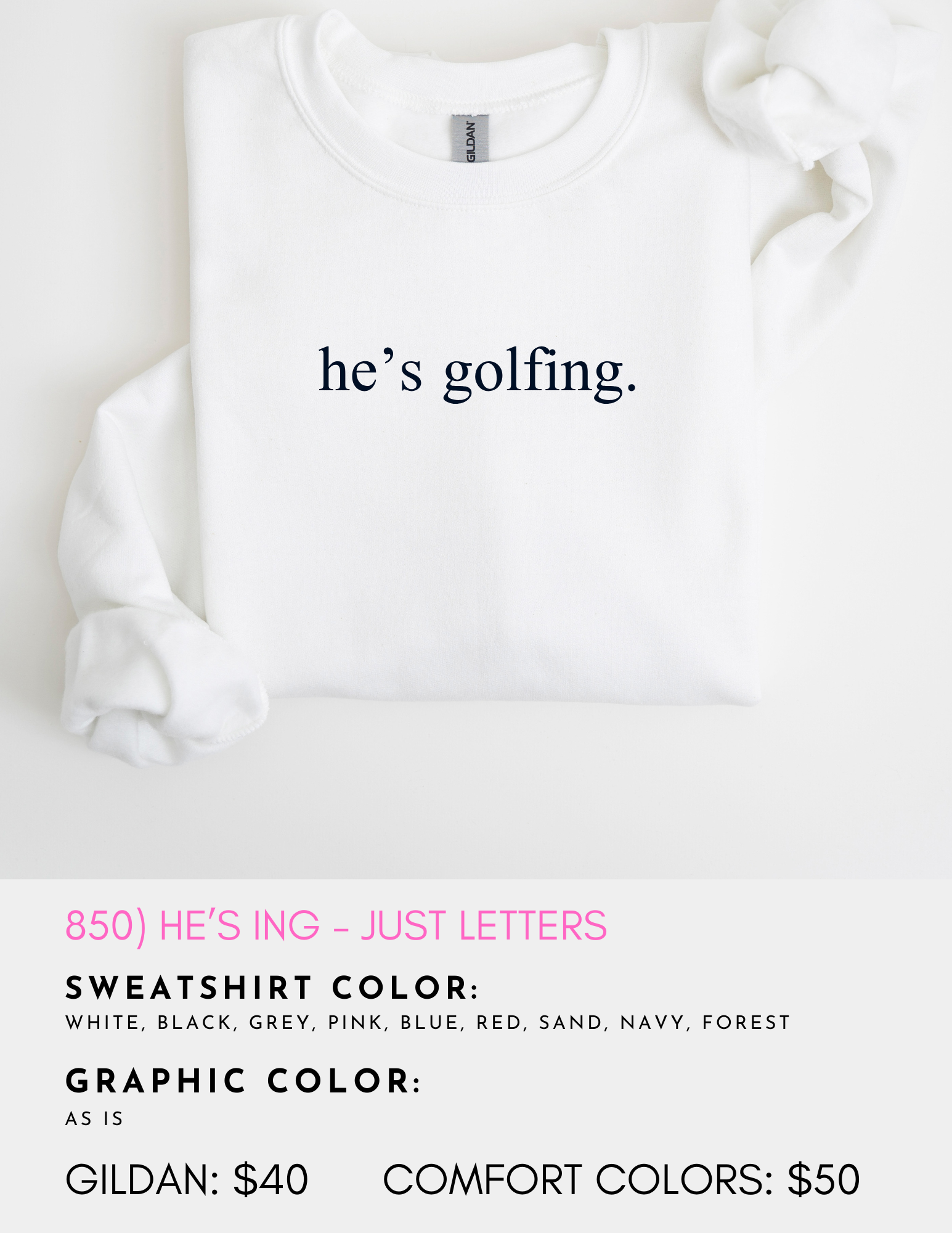 850) he's golfing - just letters