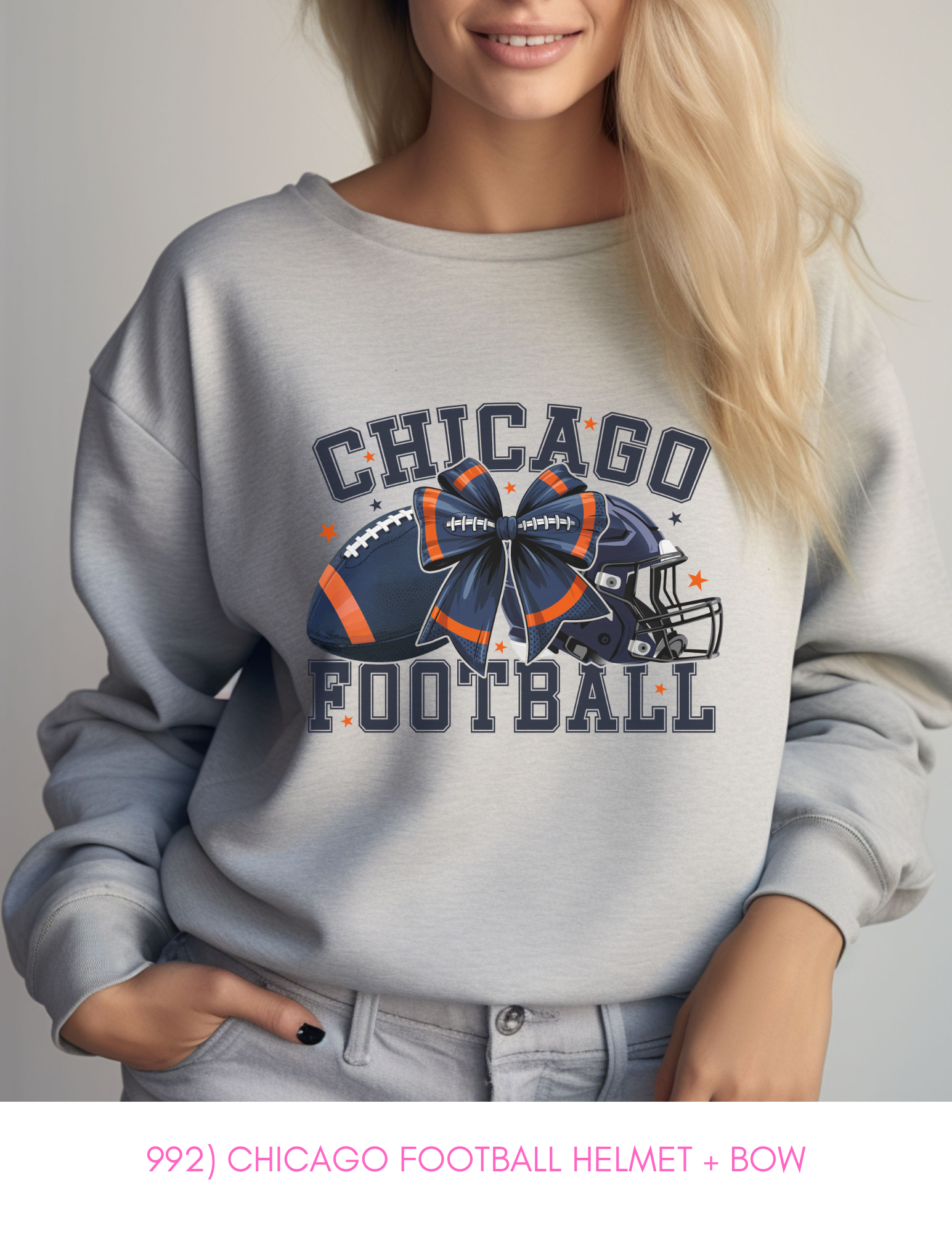 992) Chicago Football Helmet + Bow -Sweatshirt