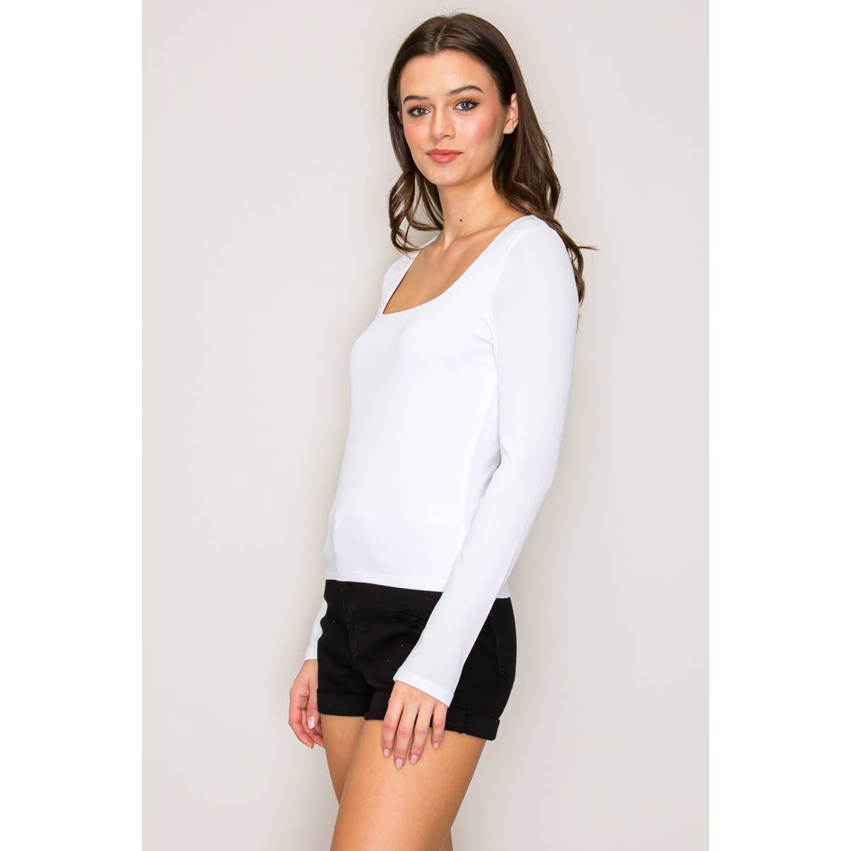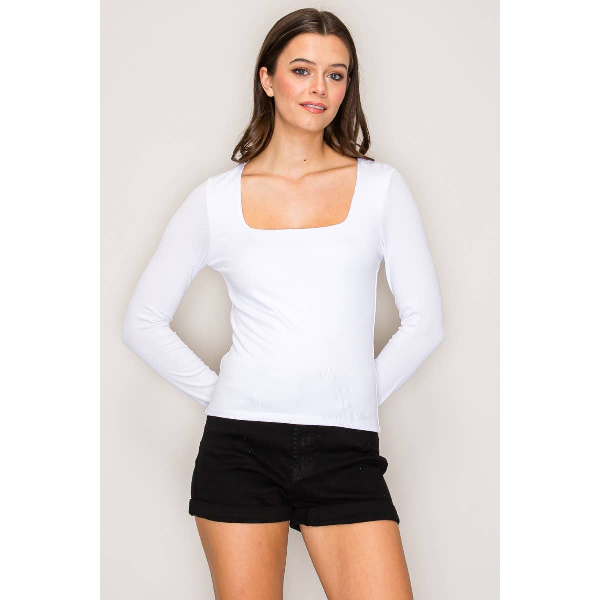 Introducing the Alexa Long Sleeve Top, a sophisticated layered essential designed for effortless style. This double-layered ribbed top features a chic square neckline that flatters and frames the shoulders beautifully. The long sleeves provide versatile coverage, while the slim fit silhouette skims the body gracefully, ending at the waist for a flattering, proportional look. The ribbed fabric adds subtle texture and gentle stretch for all-day comfort. Perfect for layering or wearing solo, the Alexa transitions seamlessly from casual weekends to polished weekday wear. A timeless wardrobe staple that works with everything from jeans to tailored trousers.