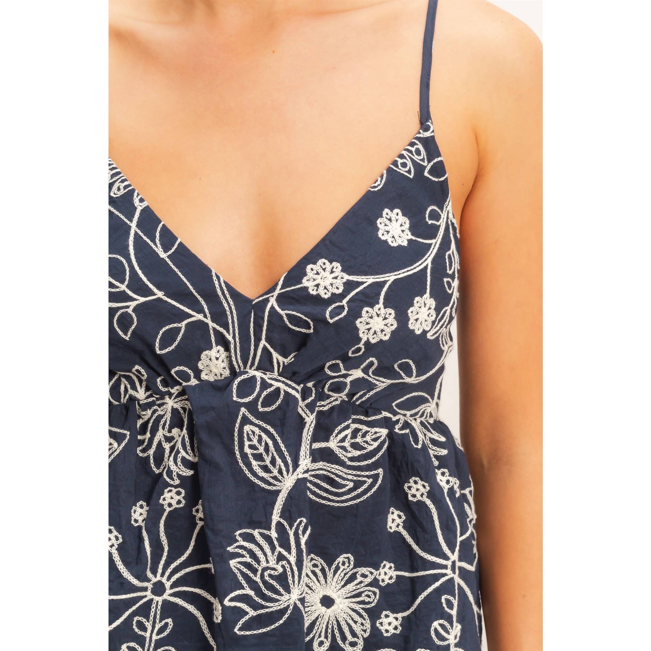 Introducing the Indie V-Neck Top in Navy—where playful style meets comfort. This babydoll beauty showcases delicate embroidery and a shirred, smocked bust that hugs you just right. Adjustable spaghetti straps frame the flattering V-neck perfectly. Throw it on with shorts for effortless weekend vibes, or layer it under your favorite denim jacket for an extra cool factor.