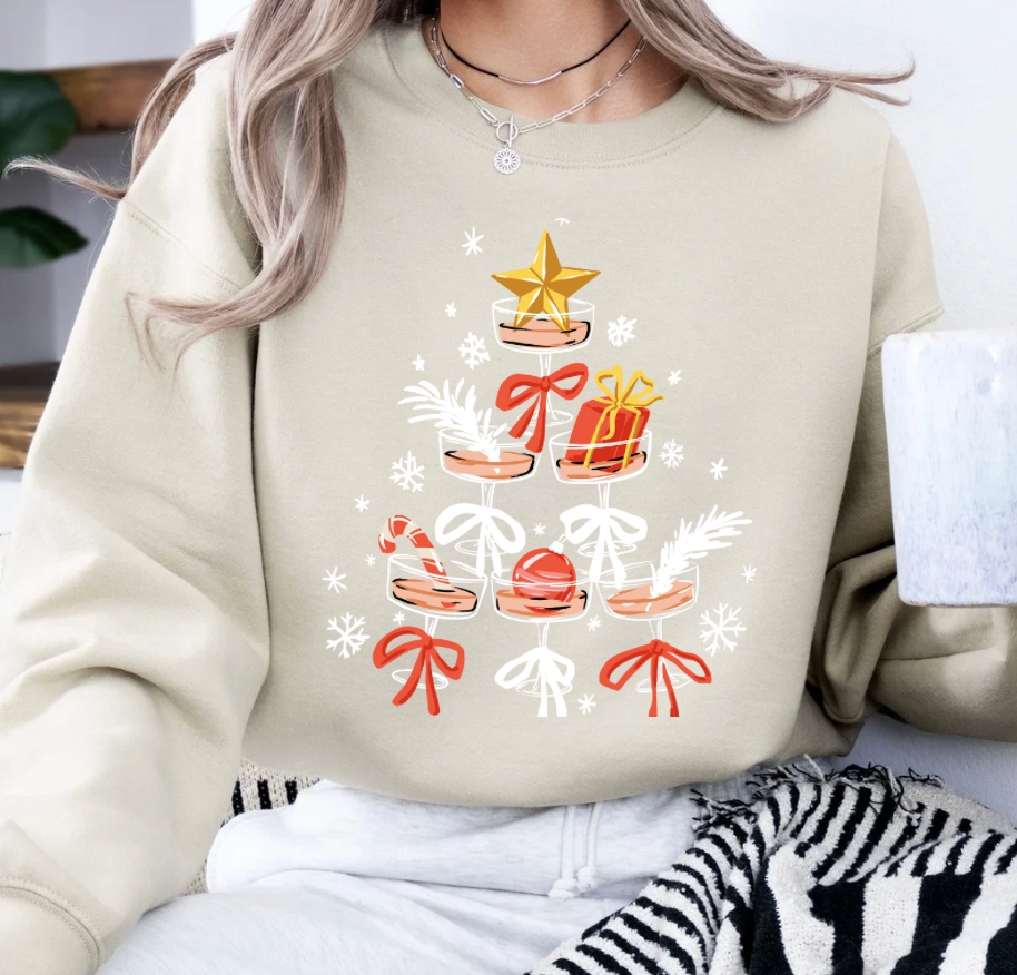 951) Christmas Cocktail Tree - White Print Sweatshirt