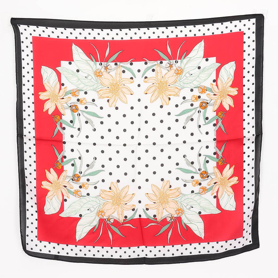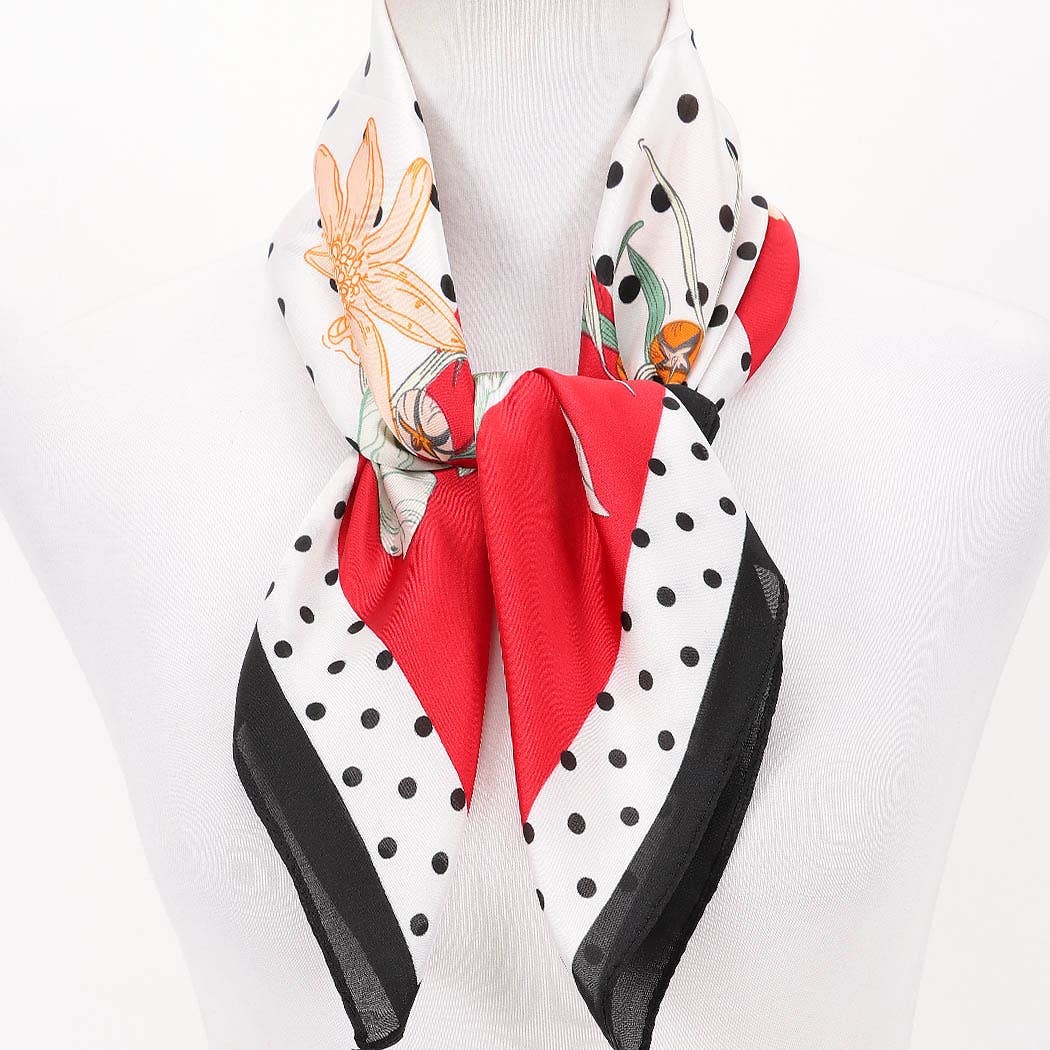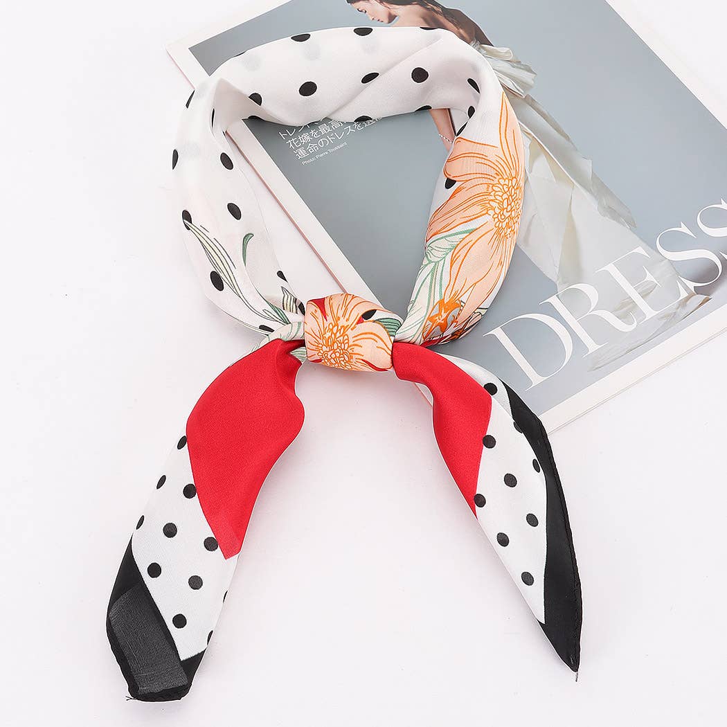 Elevate your accessory game with this charming silk scarf that blends timeless style with modern flair. Featuring a delightful mix of floral and polka dot patterns, it brings a playful retro vibe to any look. Throw it on with your favorite casual outfit, dress it up for a night out, or tie it around your wrist for instant personality. Whether you're heading to work, running errands, or catching up with friends, this versatile piece is your go-to for adding that perfect pop of color and whimsy to your day.